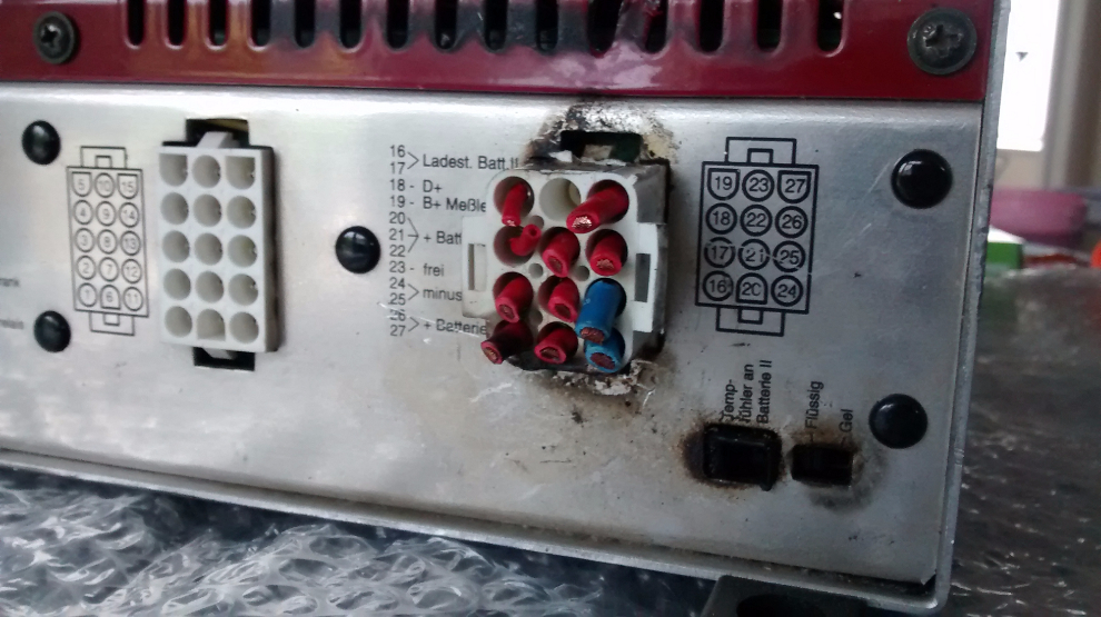 So all charge on the Elektroblock (plus 13amp power for the Fridge) goes in through fairly low rated connectors which can get overloaded if a large battery bank is fitted and/or the batteries are allowed to deteriorate.