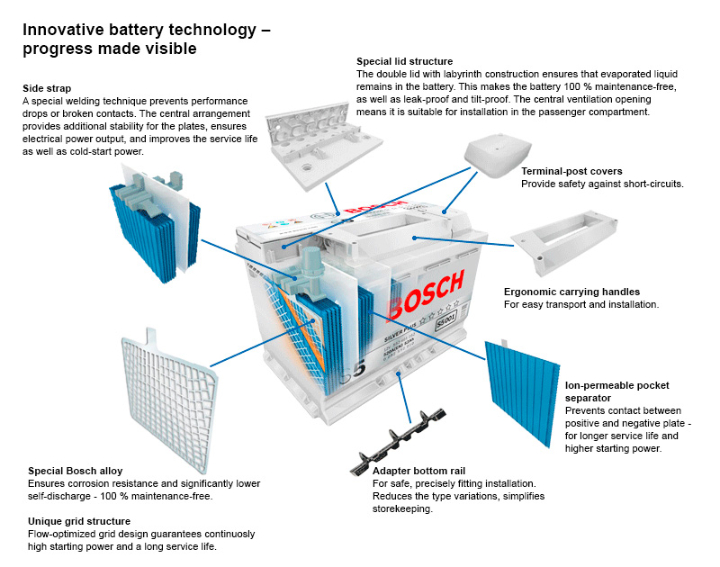 Most of the technology comments below also apply to the Yuasa EFB which has achieved 230 cycles in testing versus the Bosch L series and the old Varta LFD at 200 cycles.