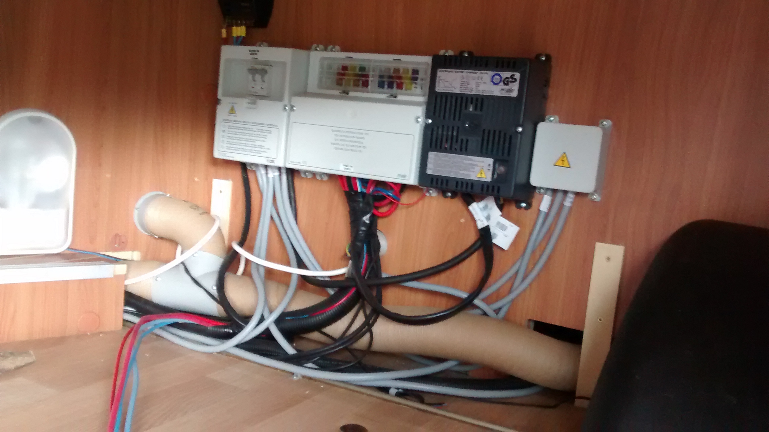 The photo below is of a Rapido Motorhome with the CBE 230v RCD/MCB (in a safe, separate Plastic enclosure) on the far left.